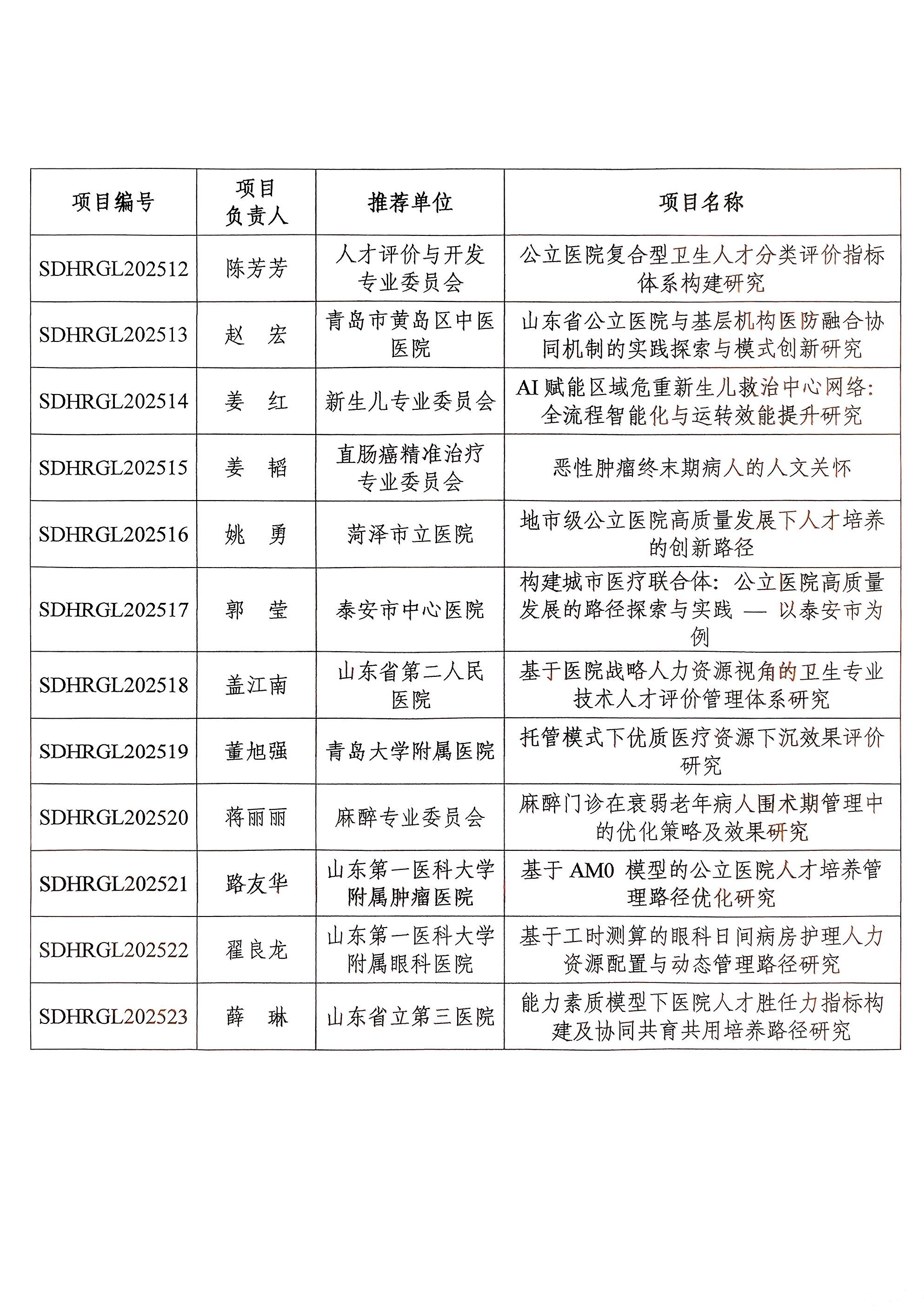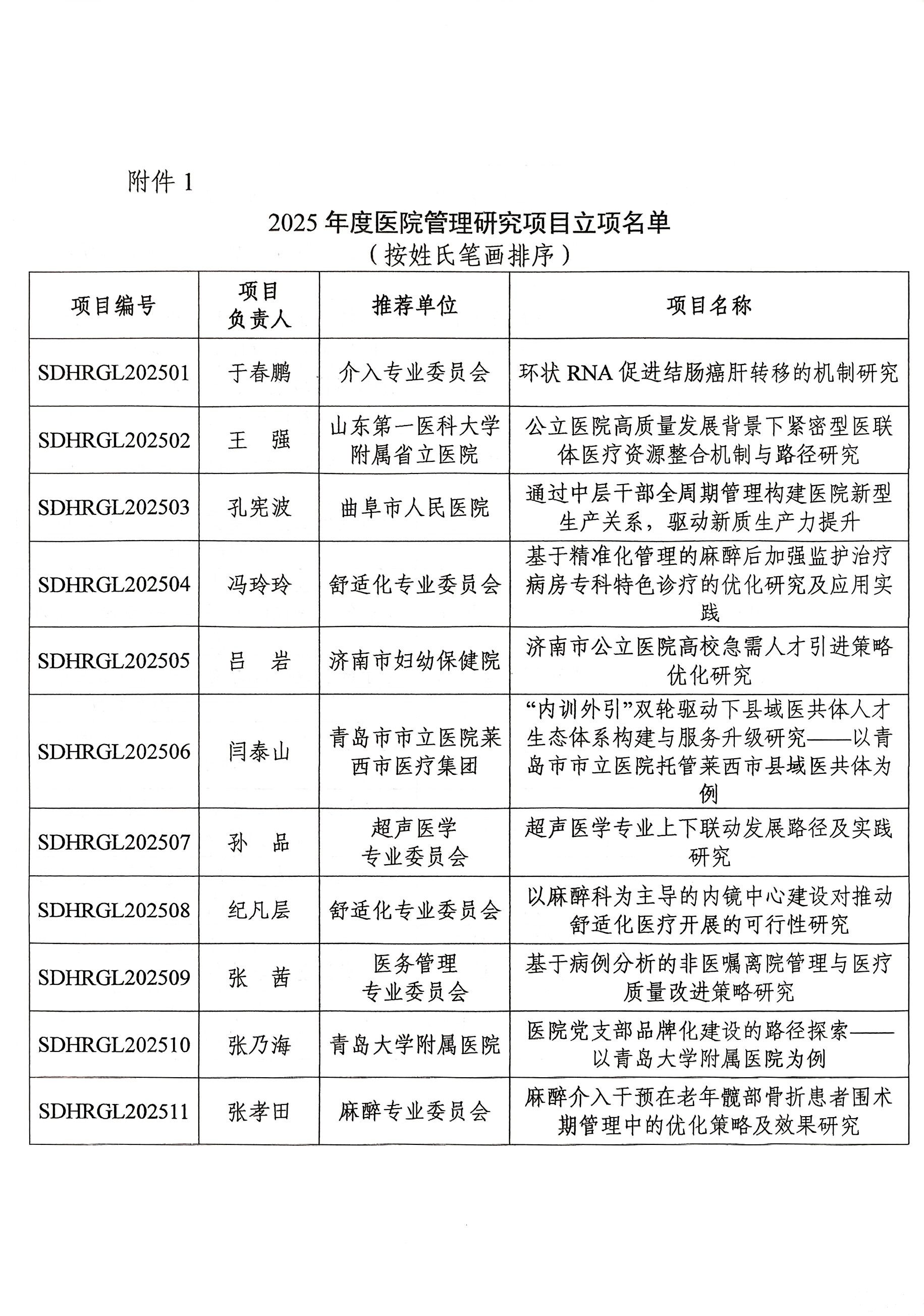 附件:1.2025年度医院管理研究项目立项名单